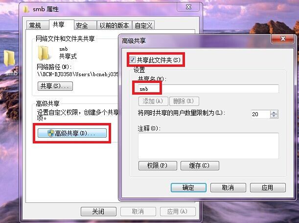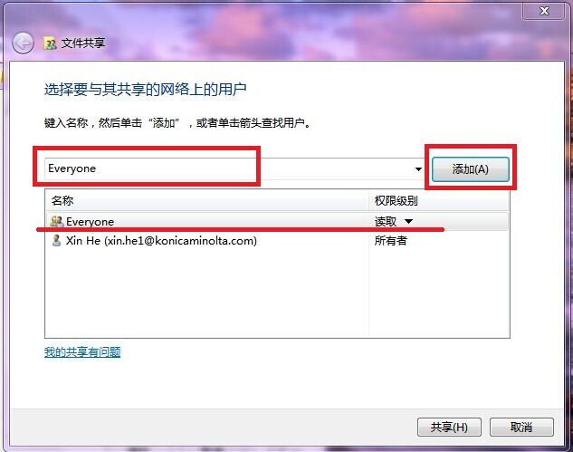 1)PC端設置共享文件夾,共享設置everyone的讀取和寫入權限