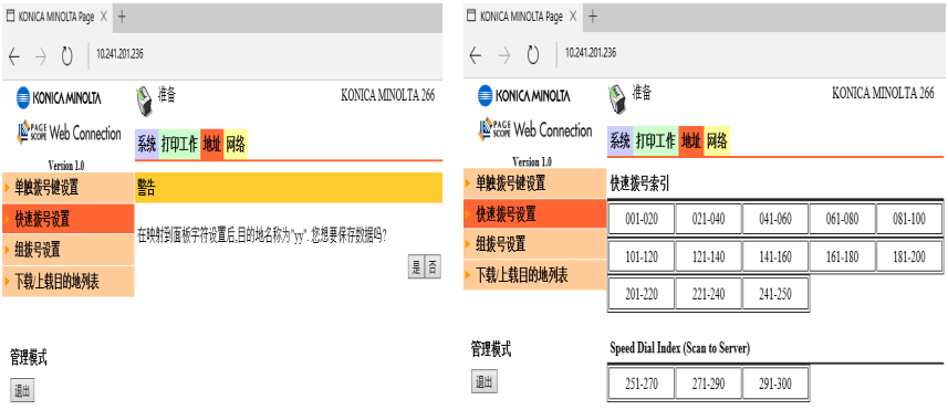 1)PC中打開(kāi)IE輸入MFP的IP地址,通過(guò)PSWC進(jìn)入管理員模式(管理員密碼:sysadm)